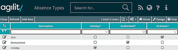 Accessed from Standing Data >> Absence Types