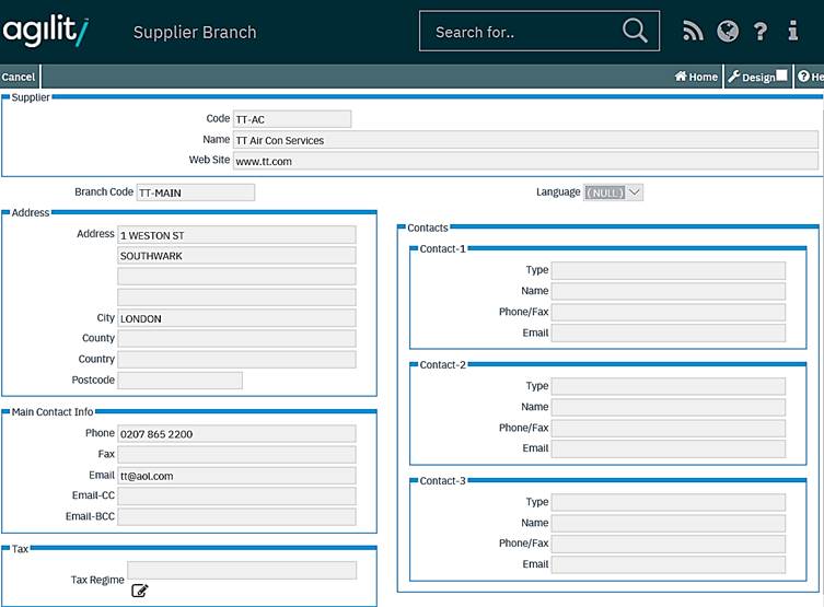 The Code field free text but must be populated. This represents an identifier for the Supplier Branch.