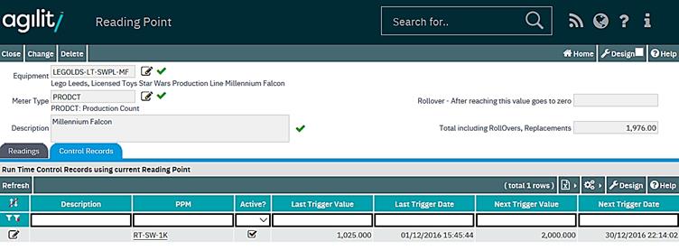 Multiple control records can be held against each reading point allowing the generation of PPM jobs on different cycles.