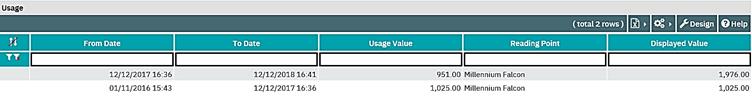 The usage grid shows usage by show the period between the pervious and current reading point and the reading value.