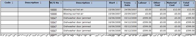The report is designed to provide the end user with a cost analysis for all of the cost centres defined within the system with facility to break this down to specific equipment, locations or periods.