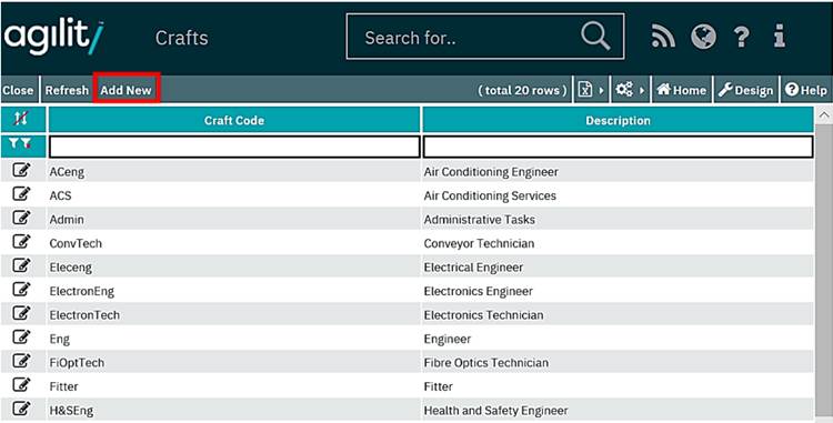 A Craft Code record is a method of defining a particular resource skill within the system.