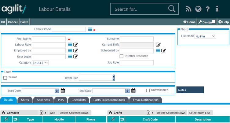 Alternatively, click on Add New to from within the Labour Resource Scan Form;