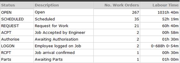 Labour Time Sum of labour time for outstanding work orders meeting filter criteria