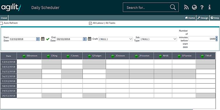 For more space utilisation, the daily scheduler can be configured to show a maximum number of completed tasks per labour resource per day. T