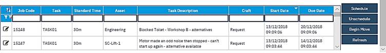 When additional tasks are added to the labour resource they will also appear in the grid. The text displayed is a hyperlink and clicking on this will take you straight to the task detail screen.