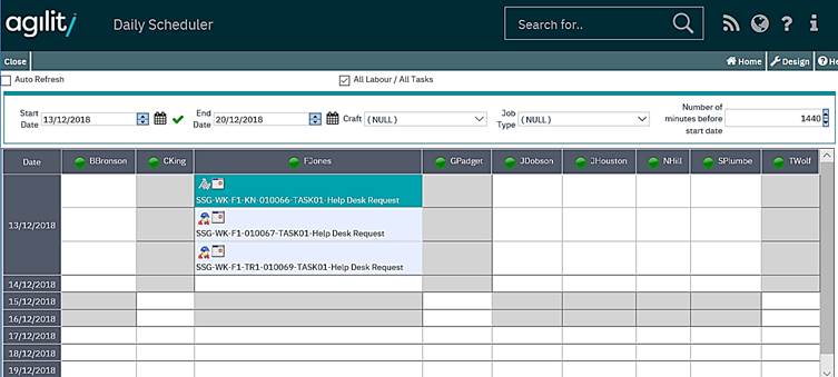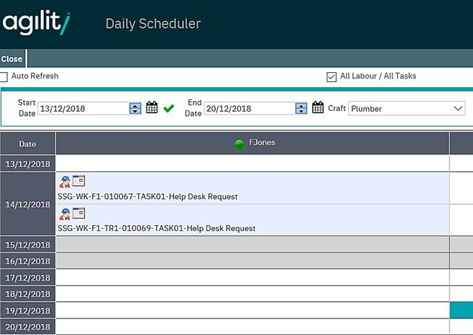 In this example, the maximum number of completed tasks is set to 1 in the system parameter, the scheduler will show the most recent completed task per labour per day plus any outstanding tasks.