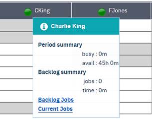 Moving the mouse over the indicator will provide a tooltip summary of the current work load for the labour resource.
