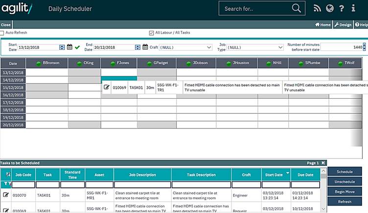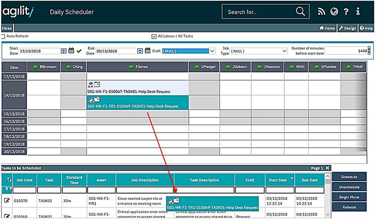 Tasks can also be moved between labour resources within the scheduler grid using the same drag and drop technique.