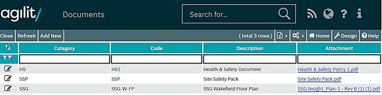 The documents held in this register are available to attach to any part of the system where the attachment menu or grid is displayed e.g. in work orders, equipment, employee