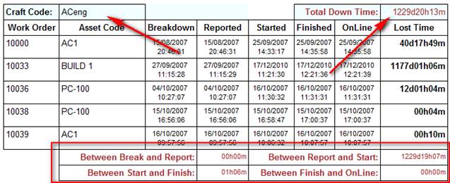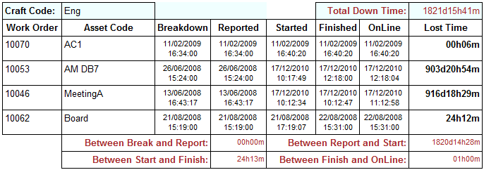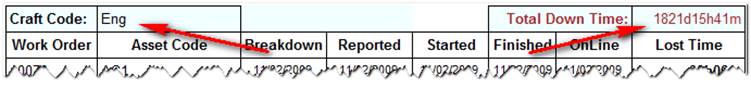 Total overall downtime for selected group; In the above example the report is ordered by craft so the total downtime for that craft is displayed.