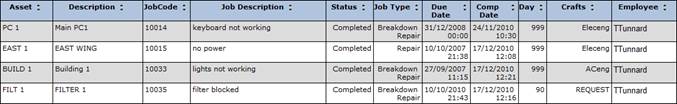 Work order records are returned where the work order has been completed, the completion date is within the completion date range and the work order has been raised against equipment that matches the other selected equipment filter criteria.