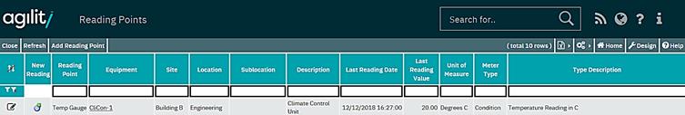 Reading points can be set up as part of the Standing Data Process or alternatively they can be added when adding New Equipment. Reading points can be accessed from