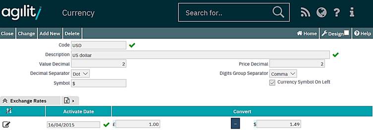 Click New Row on grid Exchange Rates in Currency Detail form.
