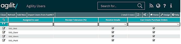 Receive E-mails – if checked, selected user will receive emails with information about any purchase orders pending for user’s approval.
