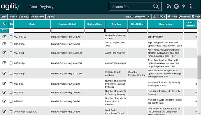 Accessed from System Configuration >> Charts & Reports >> Chart Registry