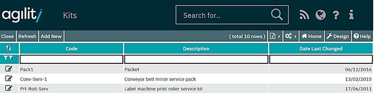 Accessed from Standing Data >> Inventory >> Kit of Parts