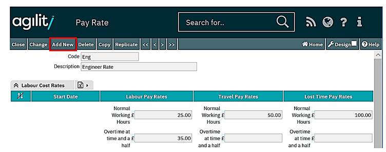Click on Add New to create a new Labour Rate.