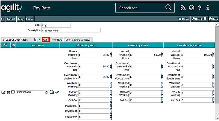 Several individual rates can then be defined. This allows both historic and future Labour Rates to be stored.