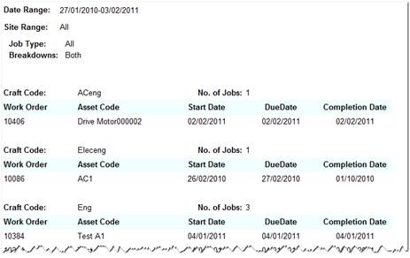 o This will include any work orders that have been raised against the equipment item where the work orders start date is within the specified date range