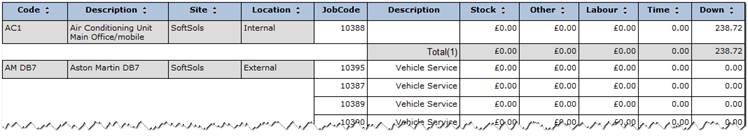 This report returns a tabular list of equipment items showing figures for all work orders raised against an equipment item that meet the filter criteria.