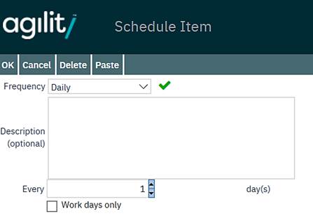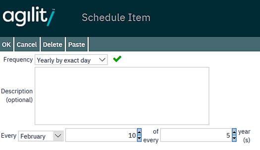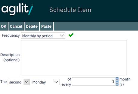 Select the cycle frequency from the drop down list. Once selected, the form will be updated to show the required fields for this cycle period.