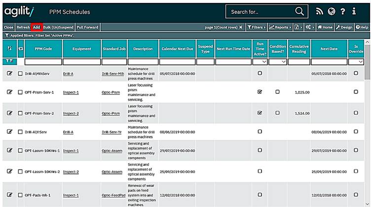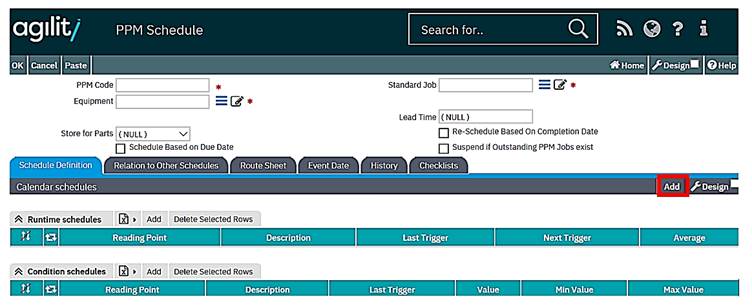 To create a PPM schedule, click on Add from the PPM Schedules Scan Form.