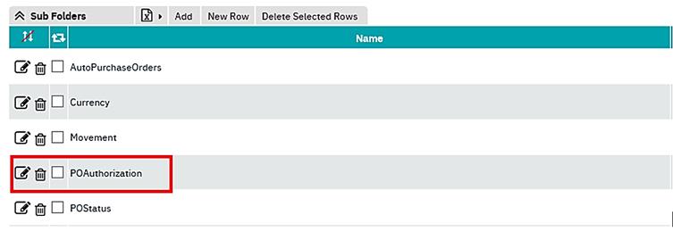 Then click the detail icon for the ‘PO Authorisation’ subfolder.