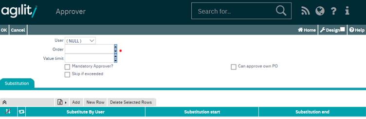 This allows for a different user to act on behalf of this approver to cover periods of absence. To add a substitution entry simply select the user from the drop down list and enter the dates for when the substitution is to start and end.