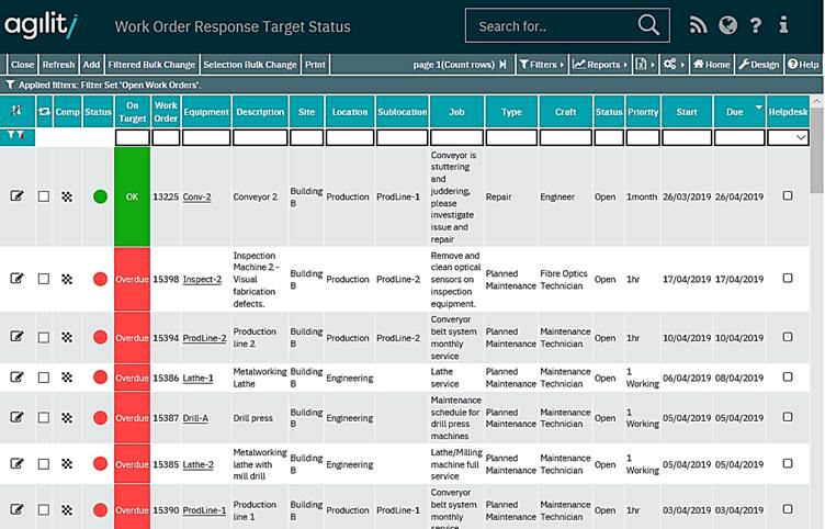 The condition of the work order can exist at one of three states, ‘OK’, ‘Concern’, ‘Overdue’.