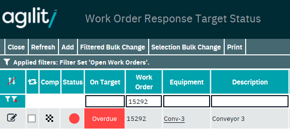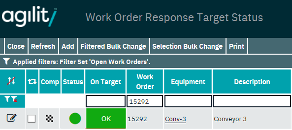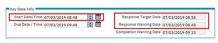 The condition indicator is then changed to reflect the status. The response warning and target date/time values are automatically calculated based upon the work order priority. (Please see priority codes for more information)