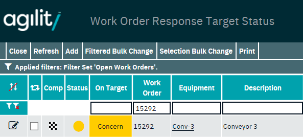 The ‘work order response target status’ scan will be displayed as ‘Ok’ until the Response warning date and time is reached at which point it will change to ‘concern’.