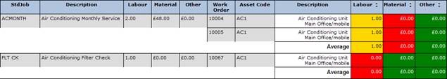 Results are returned based upon filter criteria and operational parameters which conditionally control the background colour of the actual costs cells.