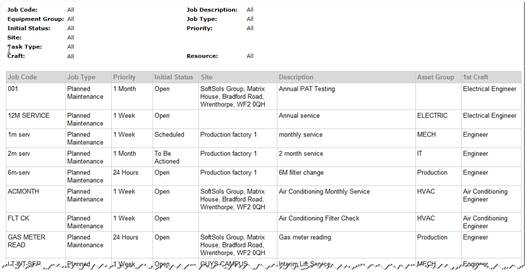 The report is designed to provide the end user with a definable printable listing of standard jobs.