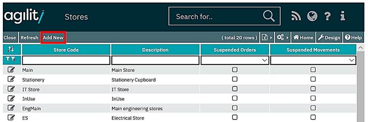 Tick boxes to indicate that Movements and/or Orders are suspended for this store