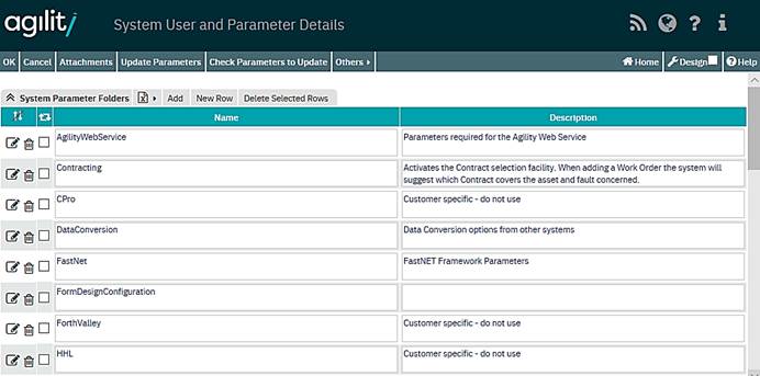 Agility requires several system parameters to be defined within the system, which are defined within the system user account: