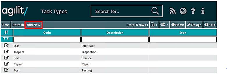 Accessed from Standing Data >> Work Orders >> Task Type Codes