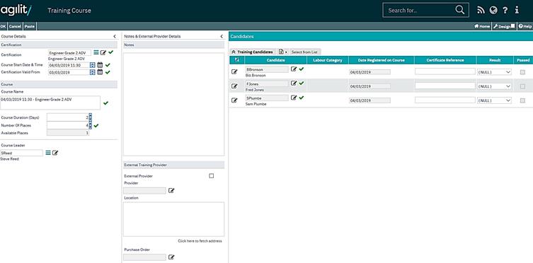 Employees (course candidates) can be added to or removed from a training course prior to the start date and without exceeding the number of places available. Once the course start date has been reached the candidate list cannot be changed.