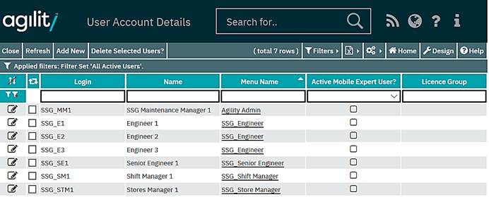 Any user who needs to be able to log into Agility needs to be assigned a user account. Each user must belong to at least one user Group to control their access rights. Users have rights to access all features unless they are specifically denied access.