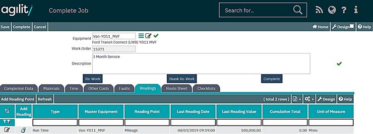 This tab details any reading points associated with the equipment that the current task has been raised against. Reading taken as part of the task can be recorded here.