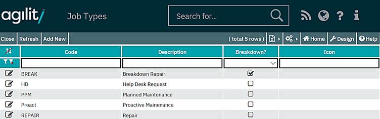A basic set of Work Order types should be configured during initial set up, to which more can be added over time as need dictates. Existing descriptions can also be changed although you should note that changing the description here will change the description on every Work Order and report where that description has been used.